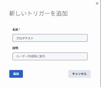 トリガー画面にて「トリガーの追加」をクリック。