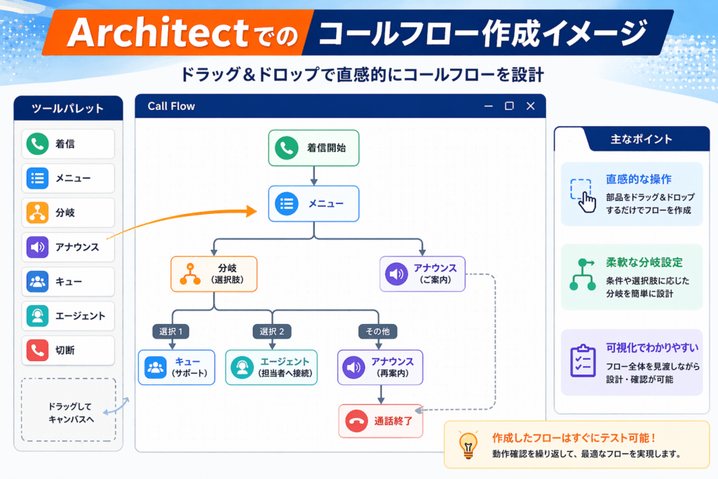 Architectは、Genesys CloudでIVRやコールフローを設計する機能です。