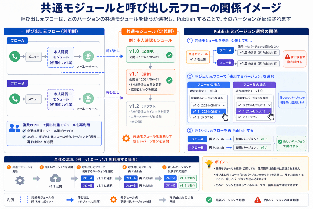 👉 呼び出し元のフローで新バージョンを選択してPublishし直していなかった
